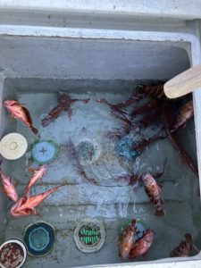 アタリはあるが、鯛は足裏サイズのみ。ガラカブがかなり釣れてくる。