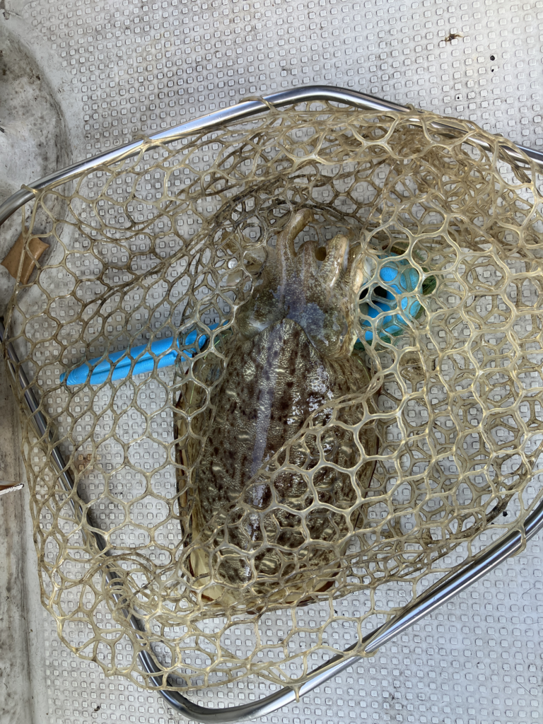 コウイカもタイラバにのってくる。でも途中で外れることが多い中、なんとか1.5キロのコウイカもゲット!