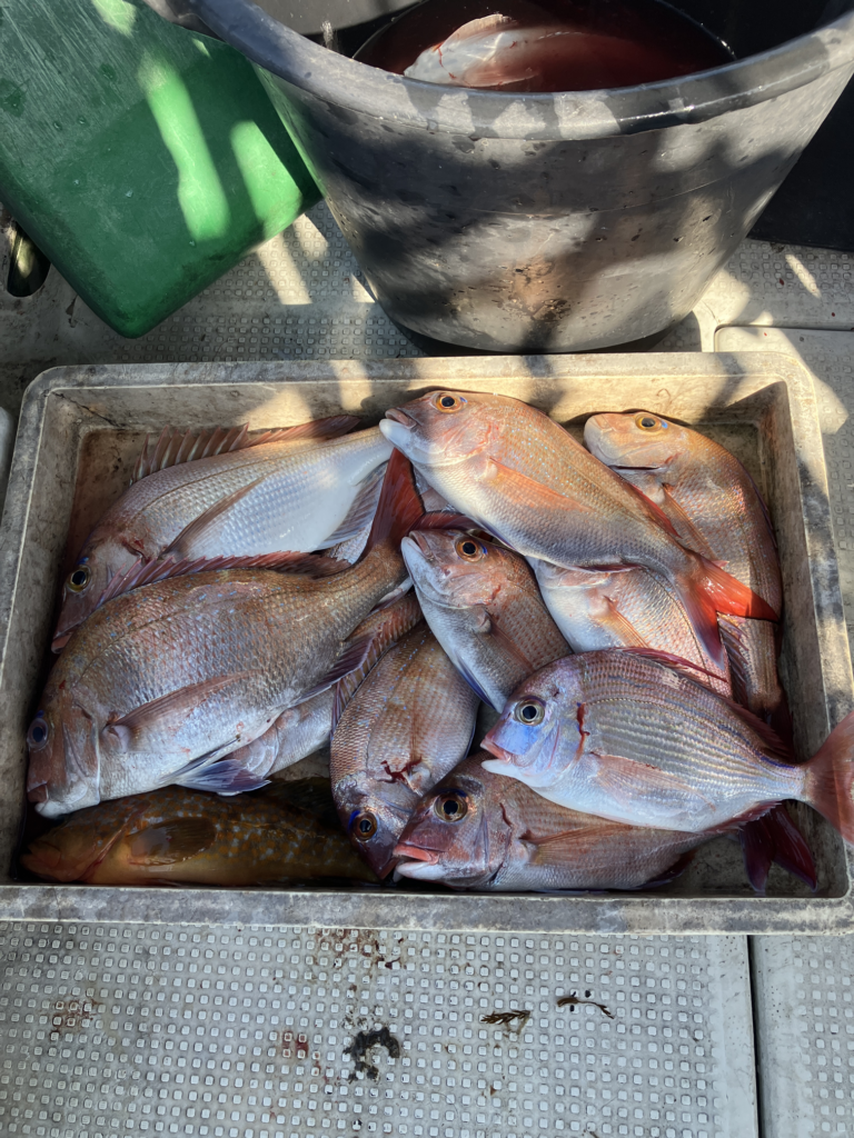 アコウを期待したものの、1匹のみ。鯛は足裏が2枚?くらいしか釣れない。