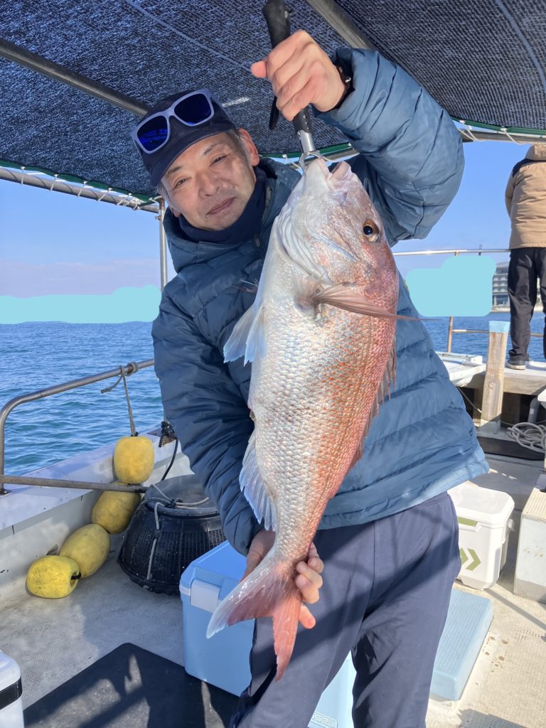 湯島では1キロの鯛と足裏強の鯛が2枚釣れる。